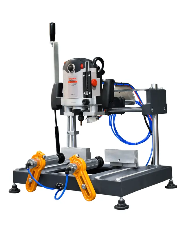 این دستگاه با 1 محور فرزکاری عمودی با موتور قدرتمند، انواع سوراخکاریهای دستگیره، آبراه و شکاف پروفیلهای UPVC را با کمک شابلون انجام میدهد.